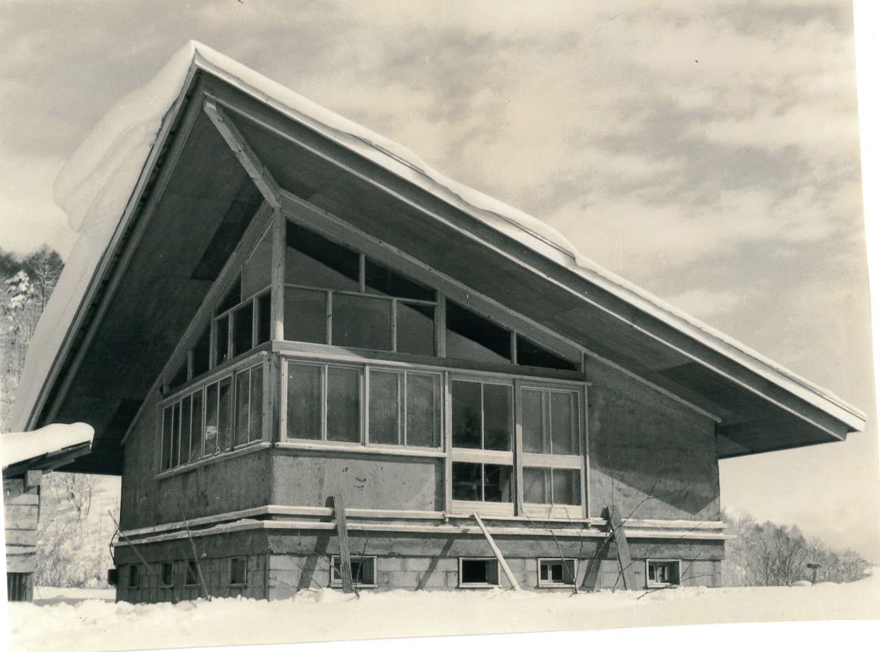 建物の原案は建築科卒業間もない藤木忠善(現・東京藝術大学名誉教授 91)、現場で建設を推進したのは当時建築科助教授に着任したばかりの茂木計一郎(34)、そして平島二郎(31)の二人のOBと聞く。みな山本の呼びかけで招集された山とスキー好きの建築科OBだった。