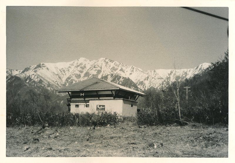 標高1200メートルの尾根上に建つ大学山岳部の山小屋で、折板状の片流れ屋根の軒を深く張出す。コンクリートブロック造の一階は寝室、木造の二階は居間中心で南西面に広い開口を設け、テラスから後立山連峰を望む。戦後の登山ブームの一端を示す山岳施設。