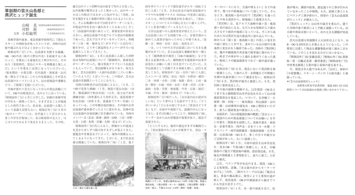 建物の原案は建築科卒業間もない藤木忠善(現・東京藝術大学名誉教授 91)、現場で建設を推進したのは当時建築科助教授に着任したばかりの茂木計一郎(34)、そして平島二郎(31)の二人のOBと聞く。みな山本の呼びかけで招集された山とスキー好きの建築科OBだった。