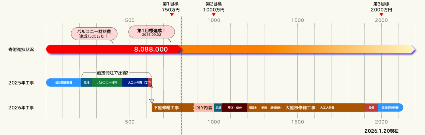 2024.8.5 バルコニーの材料費を賄える寄付を頂戴しました。引き続き大工さんにお願いするための人件費のご寄付をお願い申し上げます。