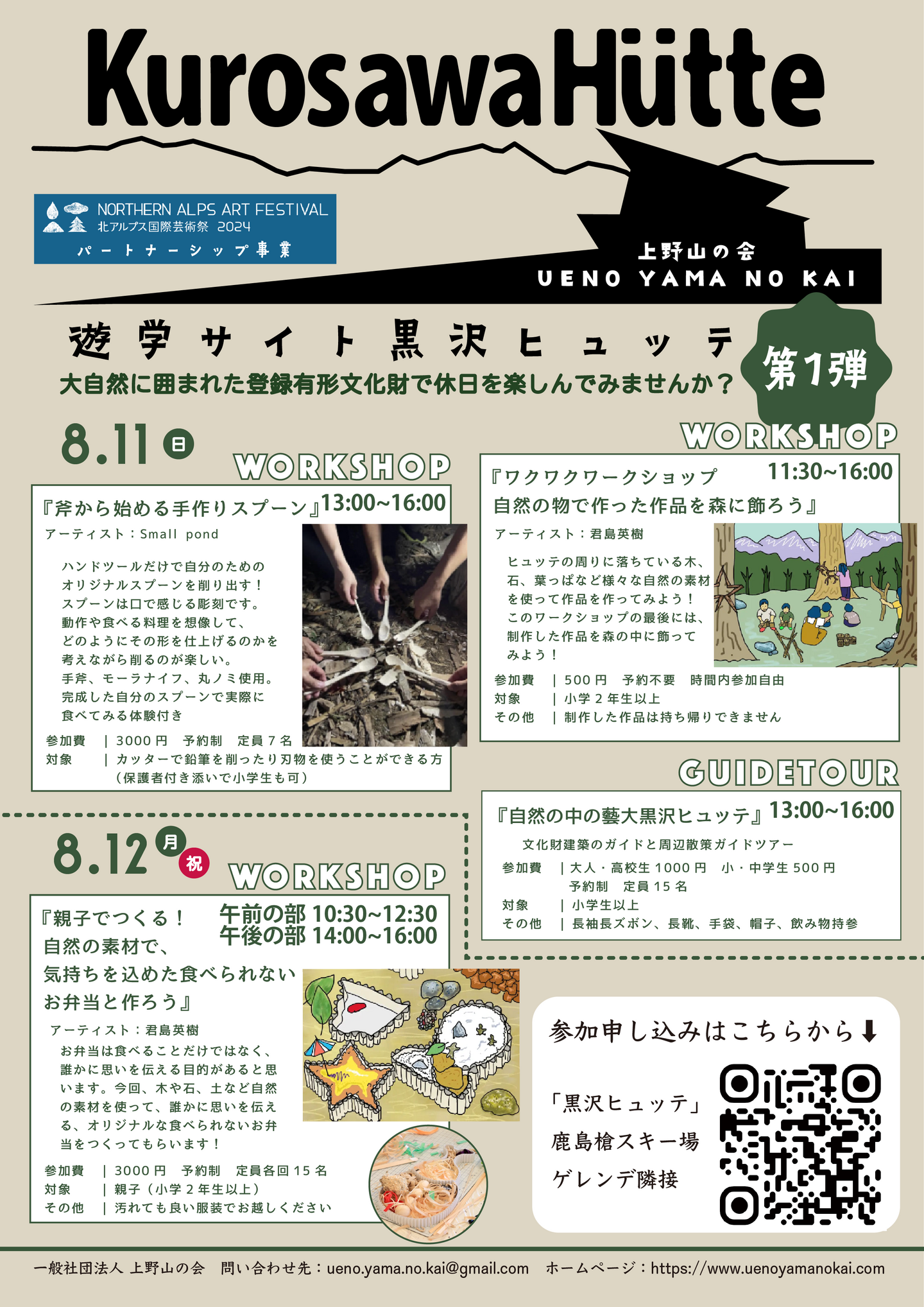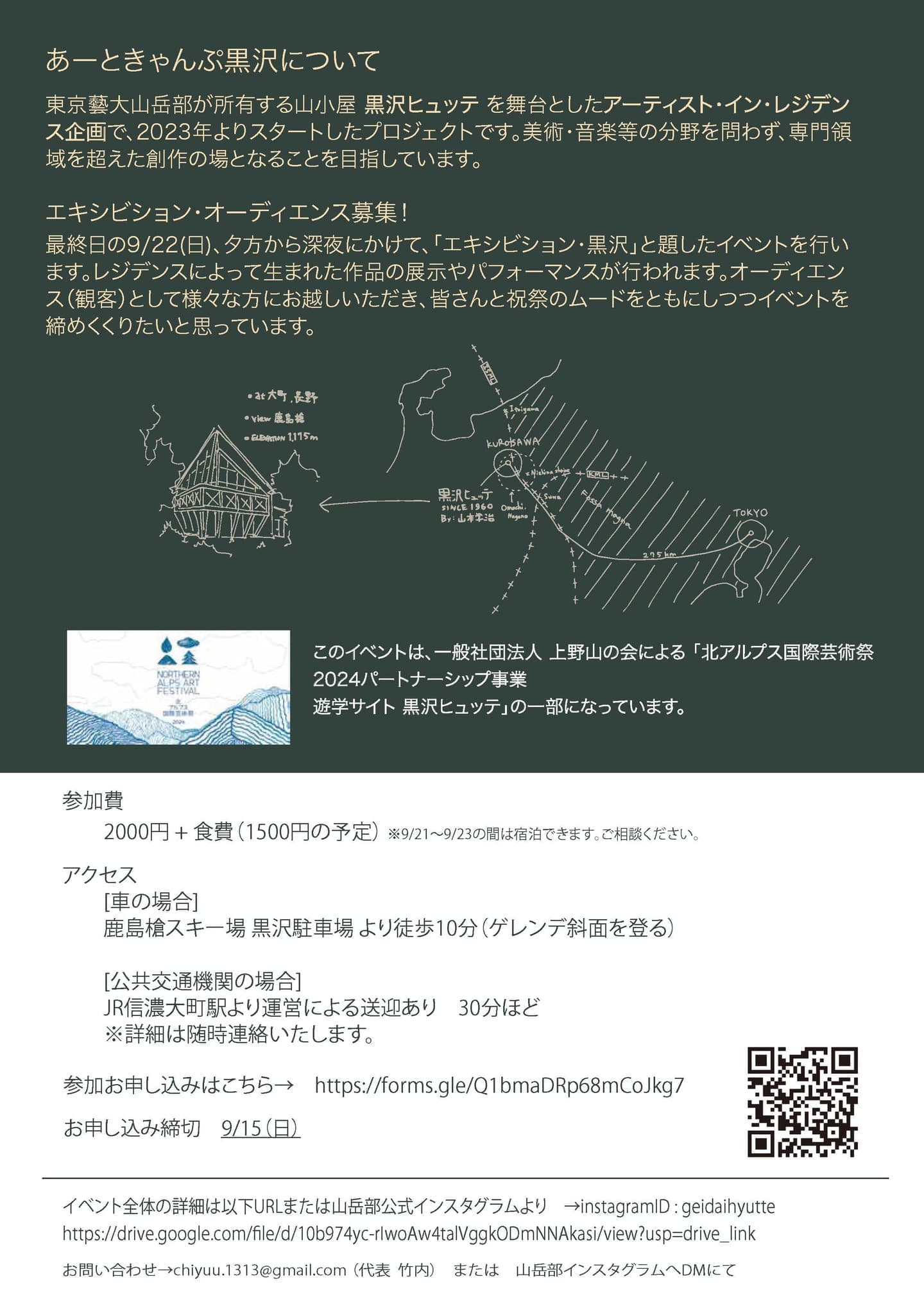 黒沢ヒュッテを積極的に公開、活用する一環として、本年芸術祭に参加しています。