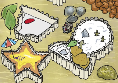 ヒュッテ 周辺に落ちている木々や石、葉っぱなどを使って、発想したものを形にし