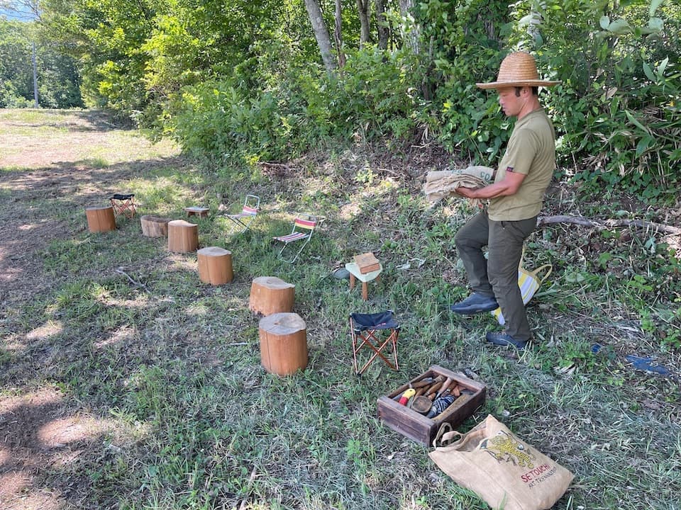 このワークショップの最後には、制作した作品を森の中に飾ってもらいます!